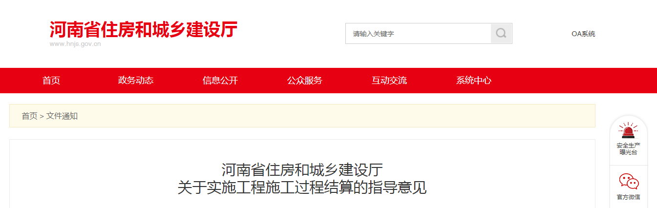 2020年7月23日,河南省住建廳下發(fā)《關于實施工程施工過程結算的指導意見》。