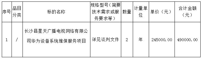 長沙縣星天廣播電視網(wǎng)絡有限公司華為設(shè)備系統(tǒng)維保服務項目談判成交公告