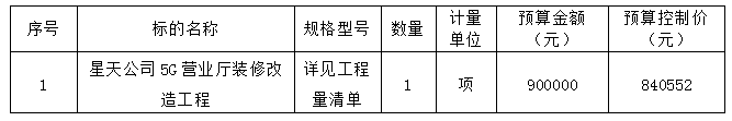 1、采購項目名稱:星天公司5G營業廳裝修改造工程