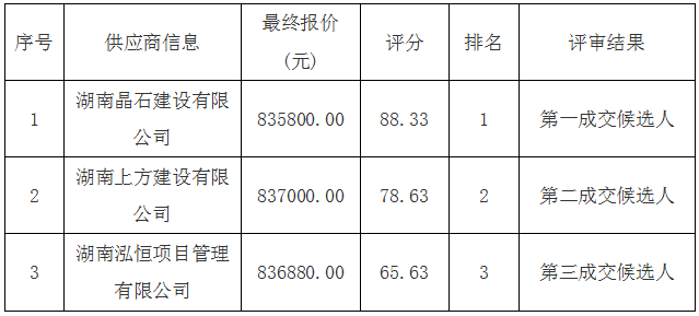 中標供應商: 湖南晶石建設有限公司