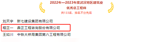 11月21日,武漢建筑業協會正式公布“2023年度武漢市最具成長性民營建筑企業”、“2022-2023年度武漢地區建筑業優秀企業、優秀企業家、優秀總工程師、優秀項目經理”兩項評選結果,鼎正連續上榜,斬獲多項行業榮譽!