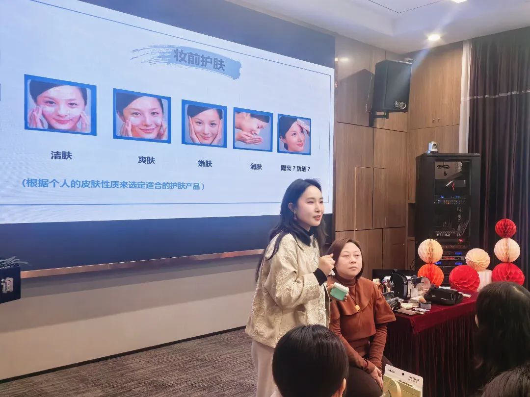課堂上,專業(yè)美妝老師以細膩的筆觸和專業(yè)的視角,系統(tǒng)地解析了職場與生活雙場景下的妝容公式。她強調(diào),底妝是整體妝容的基石,不同膚色適合的底妝色號各不相同,精準選擇能讓妝容更加自然和諧。從職場著裝到妝容設(shè)計,從理論剖析到實操技巧,從眉形勾勒到腮紅暈染,通過現(xiàn)場演示,將每一個步驟都講解得細致入微。她手把手地指導,幫助在場的每一位女神擺脫“手殘”的困擾,傳授實用的化妝技巧,耐心解答每一個疑問。