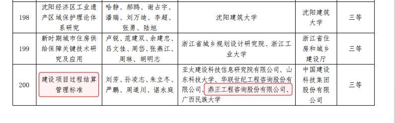 鼎正參與編制的《建設(shè)項(xiàng)目過程結(jié)算管理標(biāo)準(zhǔn)》(T/CECS 1178-2022)通過專業(yè)組和評(píng)審委員會(huì)的兩級(jí)評(píng)審,從700余個(gè)報(bào)送項(xiàng)目中脫穎而出,榮獲2024年度華夏建設(shè)科學(xué)技術(shù)獎(jiǎng)三等獎(jiǎng)。