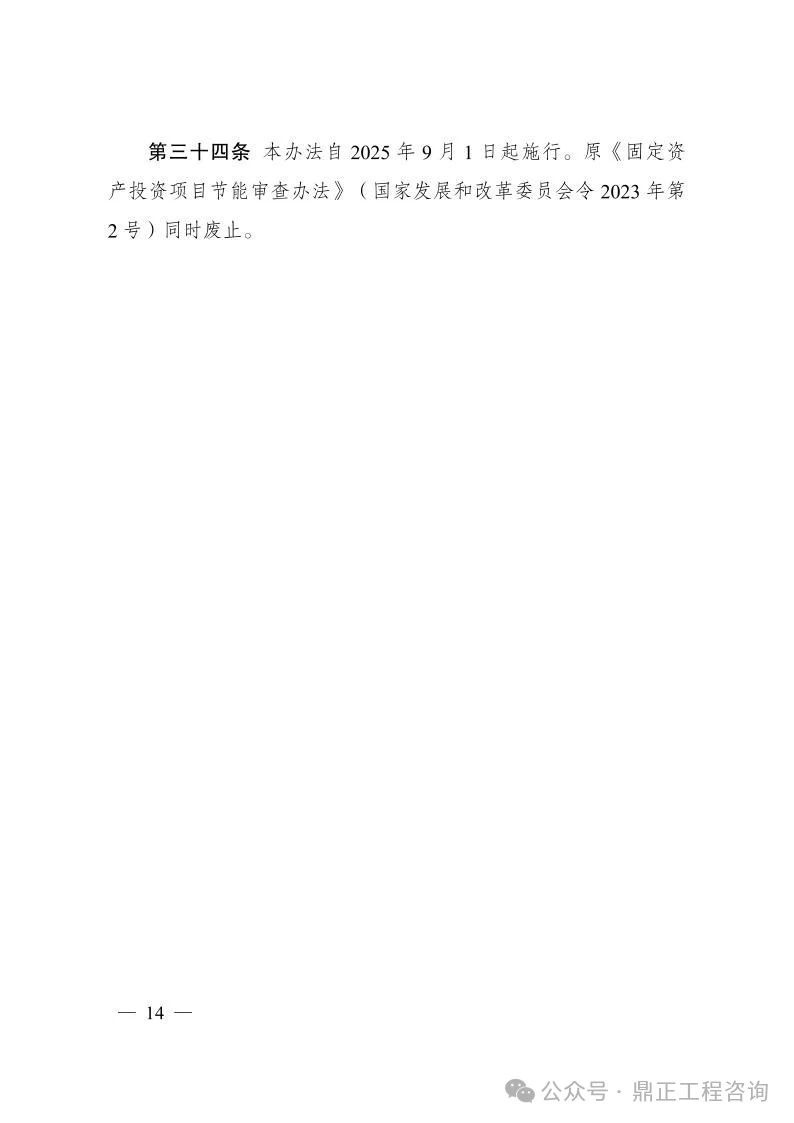 《辦法》自2025年9月1日起施行,原《固定資產投資項目節(jié)能審查辦法》(國家發(fā)展和改革委員會令2023年第2號)同時廢止。