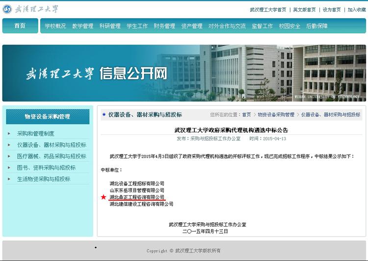 【經(jīng)營成果】我司入選武漢理工大學(xué)政府采購代理機(jī)構(gòu)庫