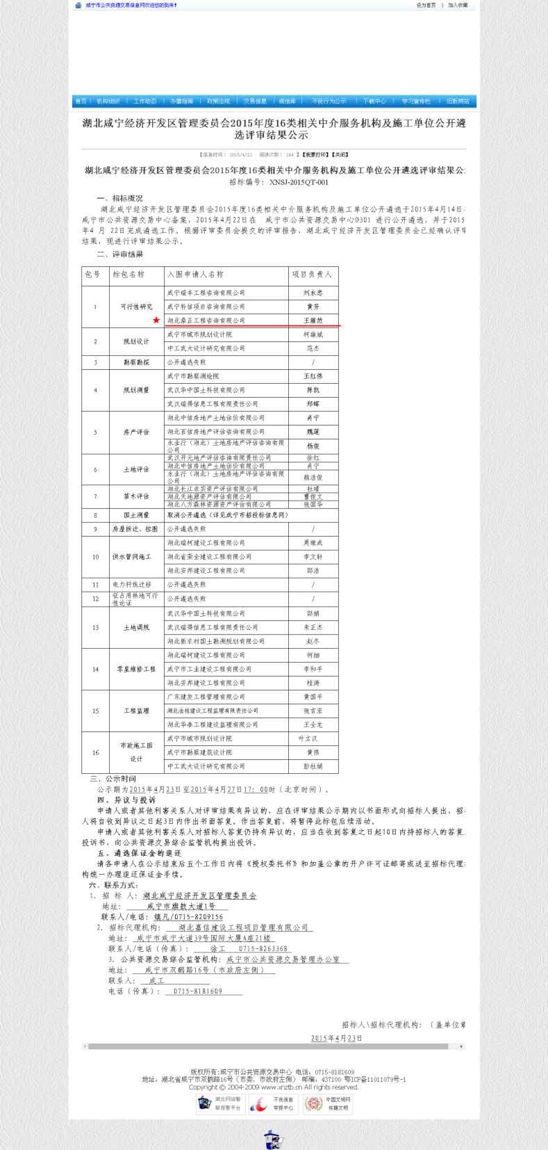 【經(jīng)營(yíng)成果】我司入圍湖北咸寧經(jīng)濟(jì)開(kāi)發(fā)區(qū)管理委員會(huì)2015年度16類相關(guān)中介服務(wù)機(jī)構(gòu)的可行性研究單位