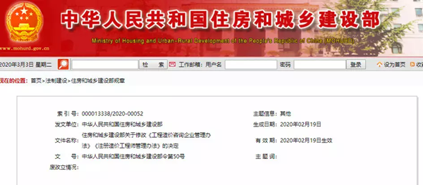 2020年3月3日,住建部50號令“住房和城鄉建設部關于修改《工程造價咨詢企業管理辦法》《注冊造價工程師管理辦法》的決定”一夜間在工程咨詢行業引發了激烈的討論。